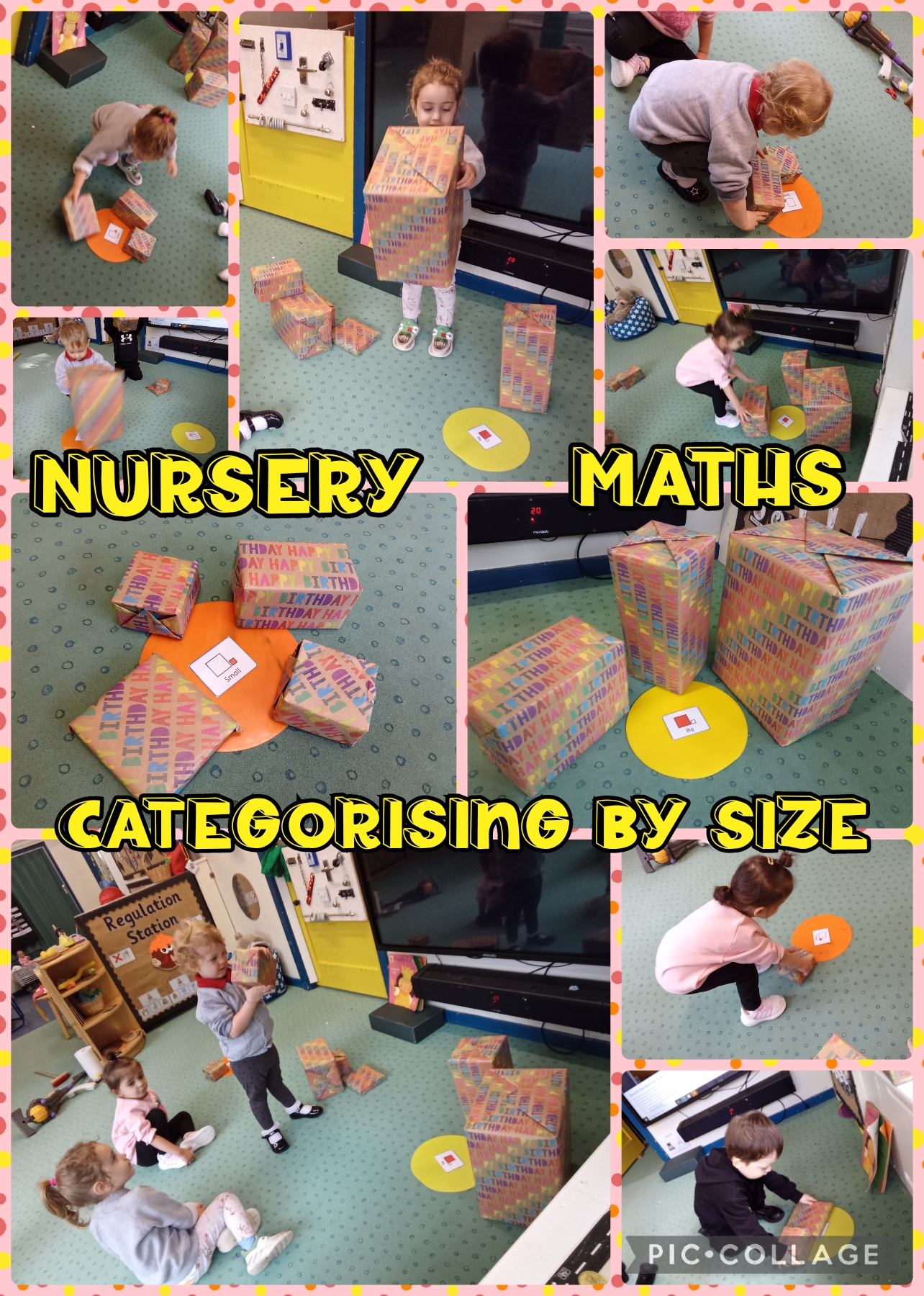 In this engaging maths lesson, the children focused on the concept of size by helping our book character, Lulu, with her birthday presents. Their initial excitement involved giving the wrapped gifts a good shake and guessing what might be inside! The main objective of the lesson was categorization by size. The children actively helped Lulu sort all the gifts into two distinct piles: big and small. Taking turns, each child eagerly chose a present and correctly placed it into the appropriate category. To support their learning and vocabulary acquisition, we utilized sound buttons and Widgit visual aids. These resources were instrumental in helping the children differentiate clearly between the terms "big" and "small." The children demonstrated a brilliant understanding of size differentiation and did an excellent job accurately sorting all of Lulu's gifts. This hands-on activity provided a fun, tangible way to reinforce early measurement concepts.