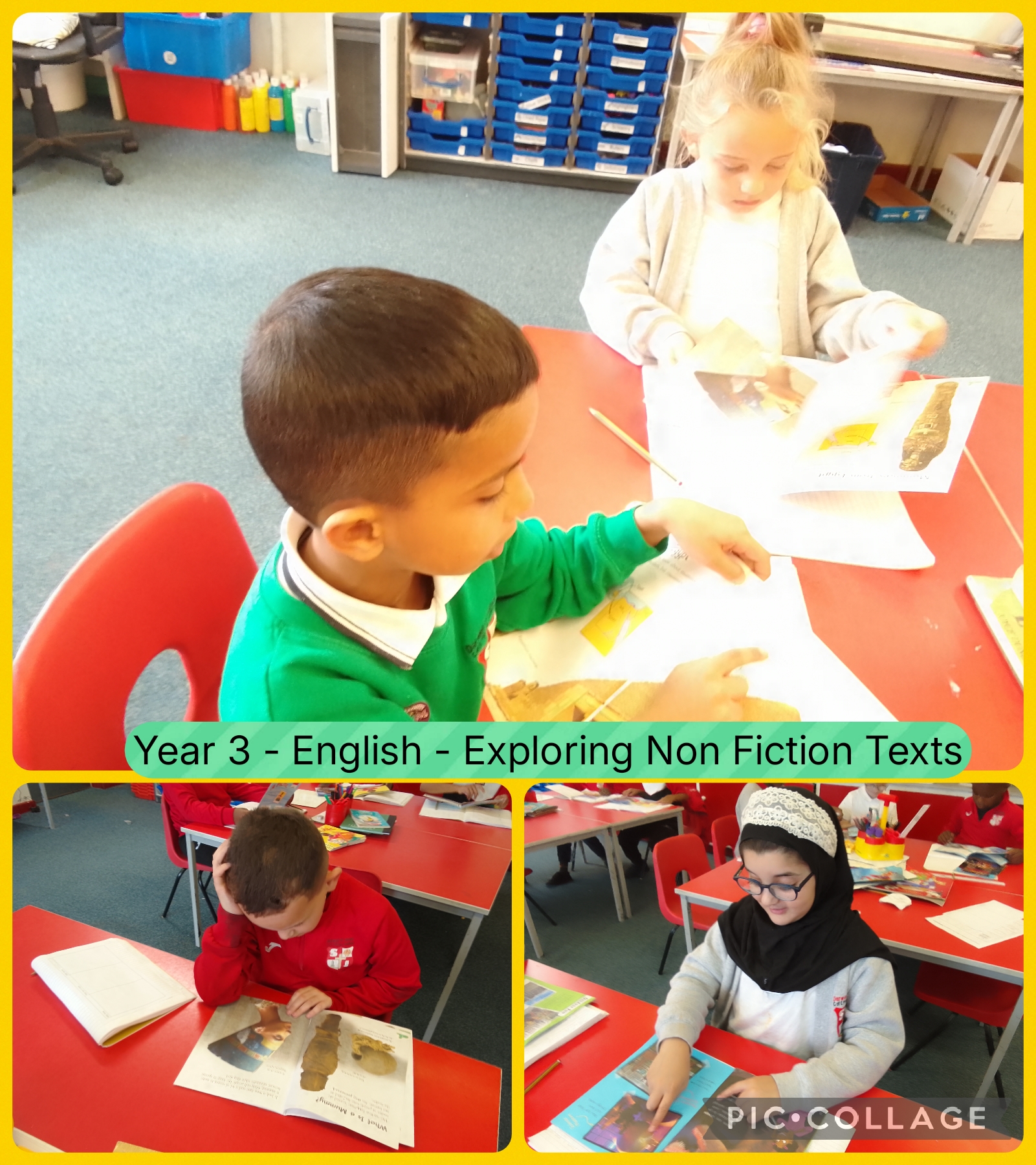 Our Year 3 students delved into the fascinating world of non-fiction this week . They explored a wide variety of informative texts, learning how to identify key features such as headings, diagrams, captions, and indexes.
