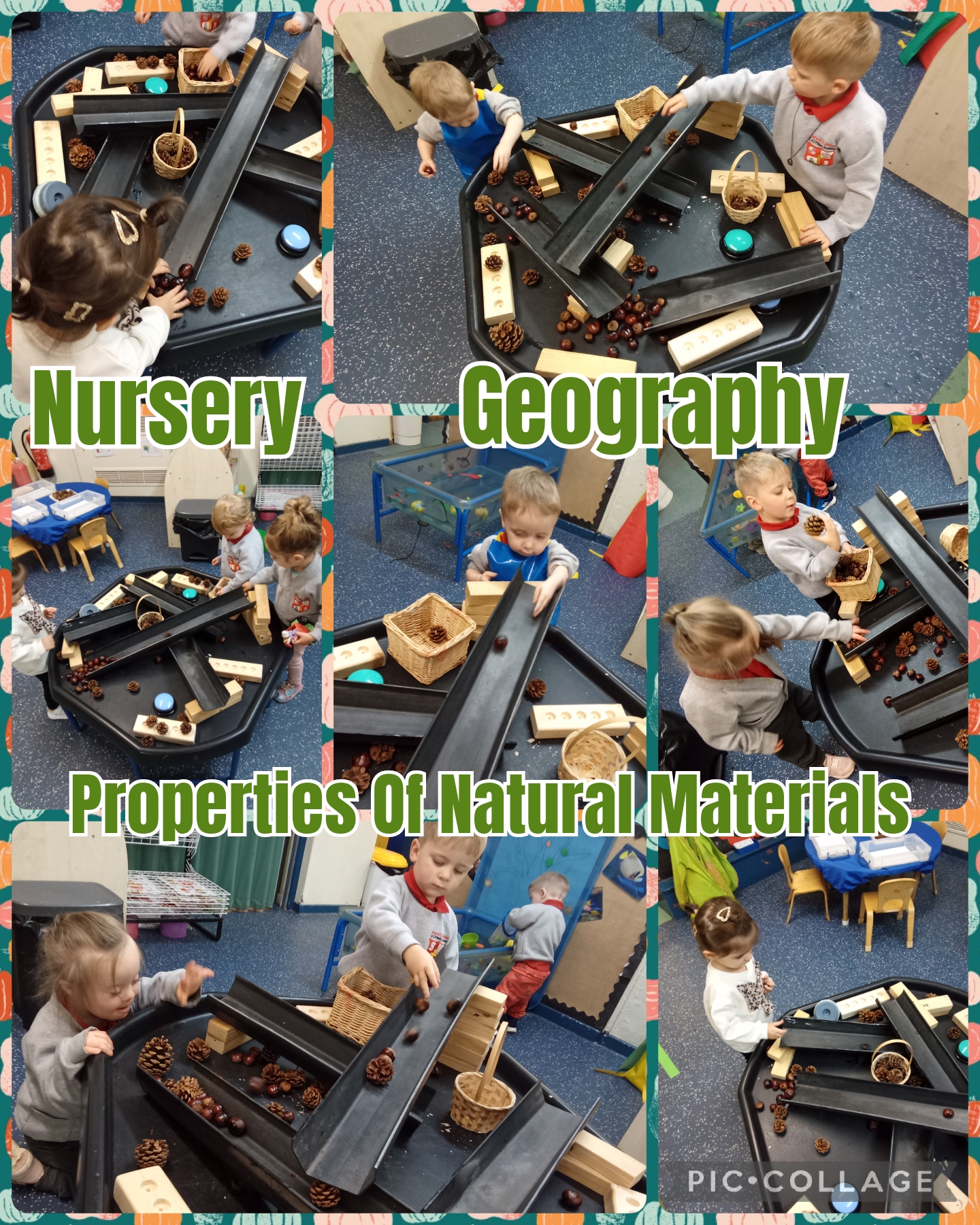 Nursery class have been exploring the properties of foraged natural materials—pinecones and conkers. The activity began with practicing anticipation skills using a clear "Ready, Steady, Go!" cue to release the objects down the pipes. The children quickly discovered a key difference, the conkers rolled down the entire length of the pipe, but the pinecones stopped short and got 'stuck'. This led to a discussion about the physical characteristics of the materials. The children were prompted to feel each item, noting that the conker was smooth, while the pinecone was spikey, which stopped it from rolling. The experimentation then moved to exploring cause and effect by adjusting the slope of the drainpipes. The children used blocks to make the pipes higher or lower, observing how the incline affected the speed of the rolling objects. Then they raced the two materials, further working on their understanding of how a material's shape and texture influence its movement. This was a rich, hands-on lesson about the physical world around them.