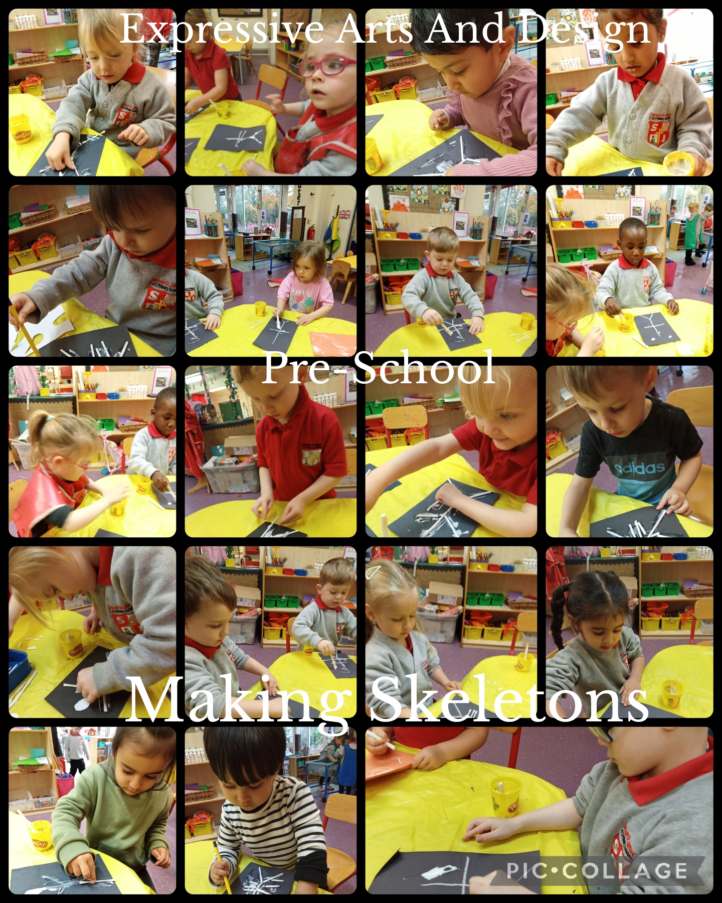 On the workshop table, the children have been busy creating their own skeletons. They used cotton buds to represent the bones and practised their gluing and sticking skills to assemble their designs. This activity was a fun way to help them see what our bodies look like beneath the skin and to understand that everyone has a skeleton.