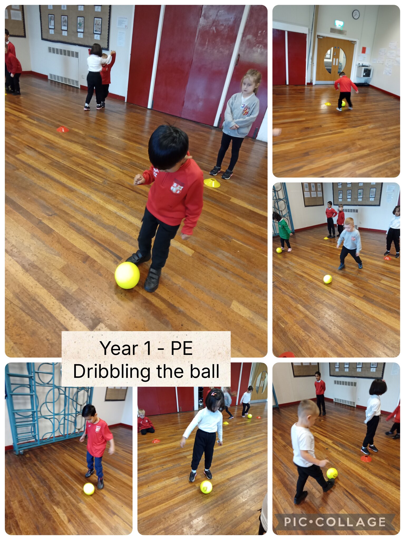 Developing great control in PE! Year 1 focused on dribbling the ball with different parts of the foot and changing direction around the cones.