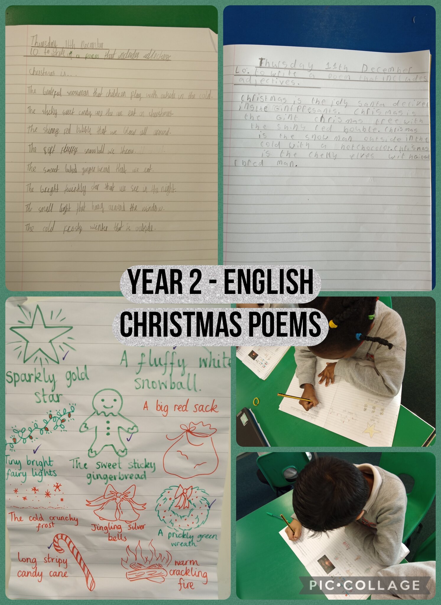 Year 2 have concluded their poetry unit with an amazing final project: festive poems all about Christmas! The children have worked hard to master the use of adjectives, using powerful describing words to bring their writing to life. We are incredibly proud of the creativity and independence they demonstrated, resulting in wonderful verses describing sparkling lights and scrumptious treats!