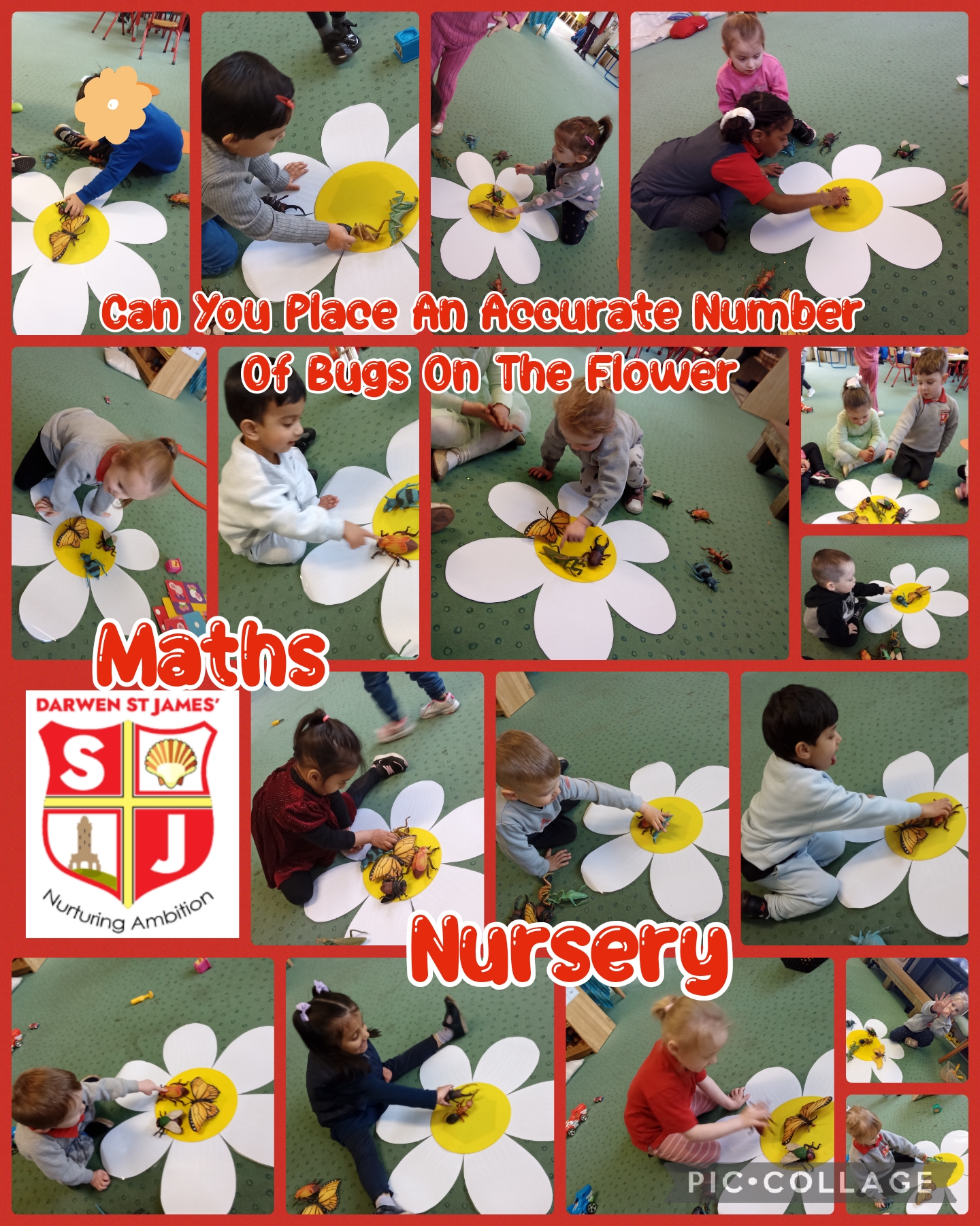 This week, the children took part in a fun, bug-themed counting challenge. The activity focused on their ability to listen to a specific number and accurately represent that quantity by placing bugs onto a giant flower.