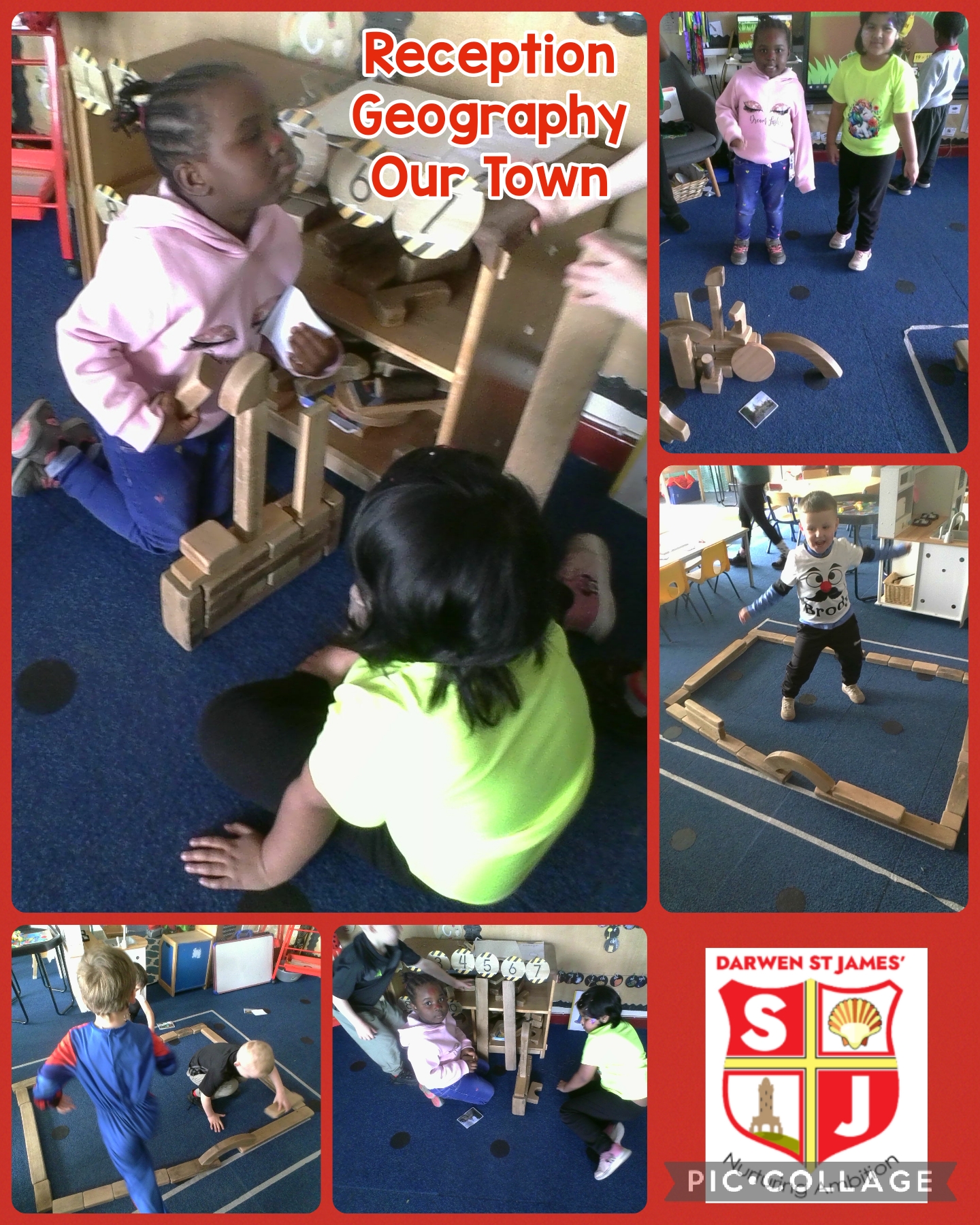 The children enjoyed reflecting on the familiar spots they have visited with their families and sharing exciting ideas about where they’d like to go next. Using these discussions as a blueprint, our young architects took to the construction area to recreate Darwen’s iconic skyline. It was wonderful to see their creativity in action as they selected different-sized blocks to represent the unique shapes of Darwen Tower, the Library, and the bustling Town Centre. From the greenery of Bold Venture Park to the local Swimming Baths and even a very busy Asda, the children demonstrated fantastic spatial awareness and teamwork while bringing our local community to life.