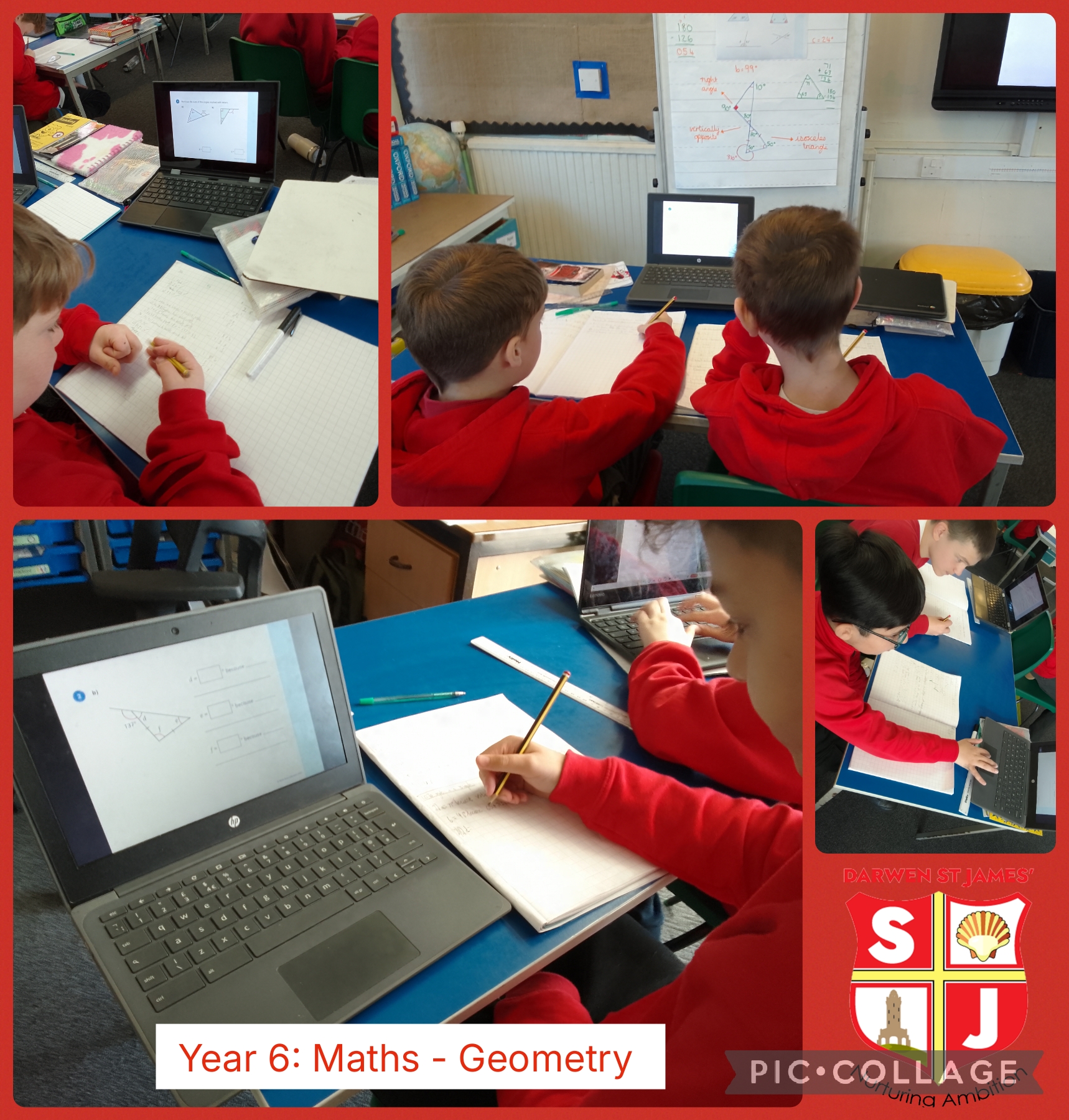 This week year 6 are continuing their unit on geometry. They have been focusing on understanding angles in triangles, vertically opposite angles, and how to apply their previous knowledge to new contexts.