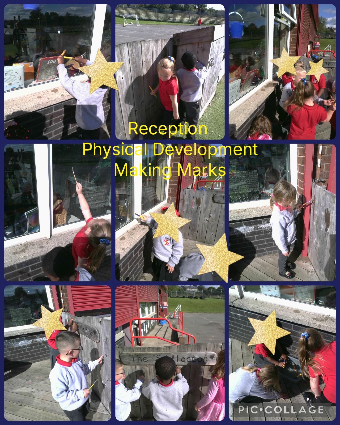 Reception have been developing their gross motor skills this week. Painting with water onto the windows stretching up high to make large movements and then fine movements painting the fence. We added in the shapes we have been learning in Write Dance to develop all the muscles in our arms and fingers.